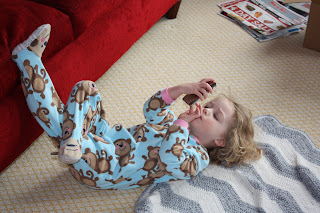 After a disastrous trip to Target - i will spare the details but will say it involved a lot of running, laughing and throwing (Grace) along with yelling and chasing (Me) - we stayed home where Grace redeemed herself (for a bit) by cleaning the kitchen floor with a wipe. Now where would she have ever seen that?!